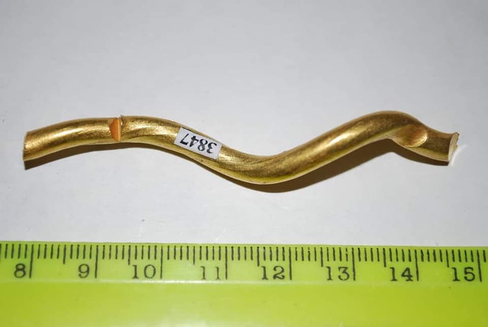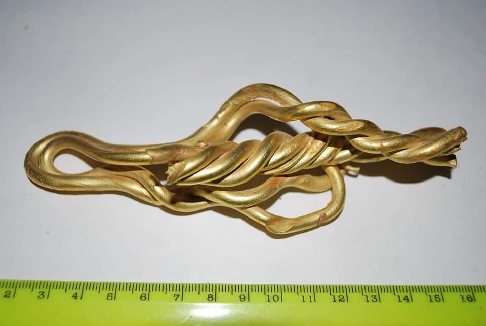 На Закарпатті археологи показали найбільшу золоту знахідку. Це — нашийна прикраса торквес, вагою 544 г, зроблена з трансільванського та уральського золота.