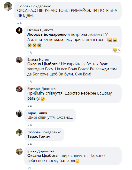 На початку березня 2021 року, лікар Оксана Цімбота втратила батька, про це повідомляється у ФБ.