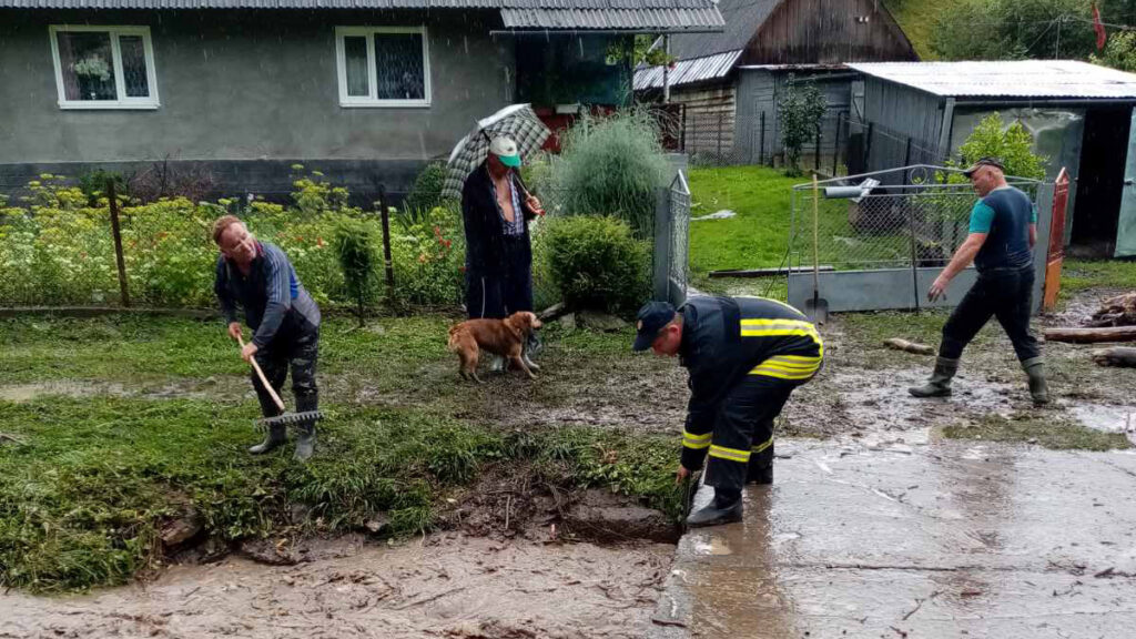 У с. Верхній Студений Міжгірського району місцевий потічок розлився на автомобільну дорогу, підтоплено 3 дворогосподарства.