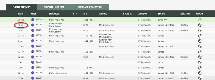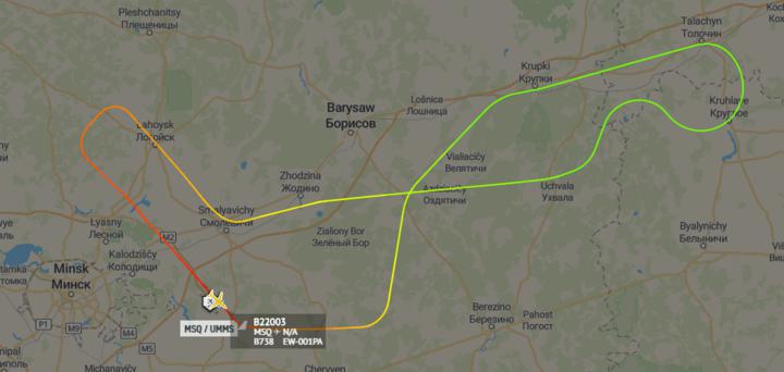 Літак Boeing 737 з бортовим номером EW-001PA (точно відомо, що це один з двох бортів, на якому літає під час візитів Олександр Лукашенко) близько 11 ранку вилетів з Національного аеропорту Мінськ в східному напрямку. Деякий час борт зберігав курс, проте потім розвернувся в районі Круглого Могилевської області і полетів назад до Мінська.
