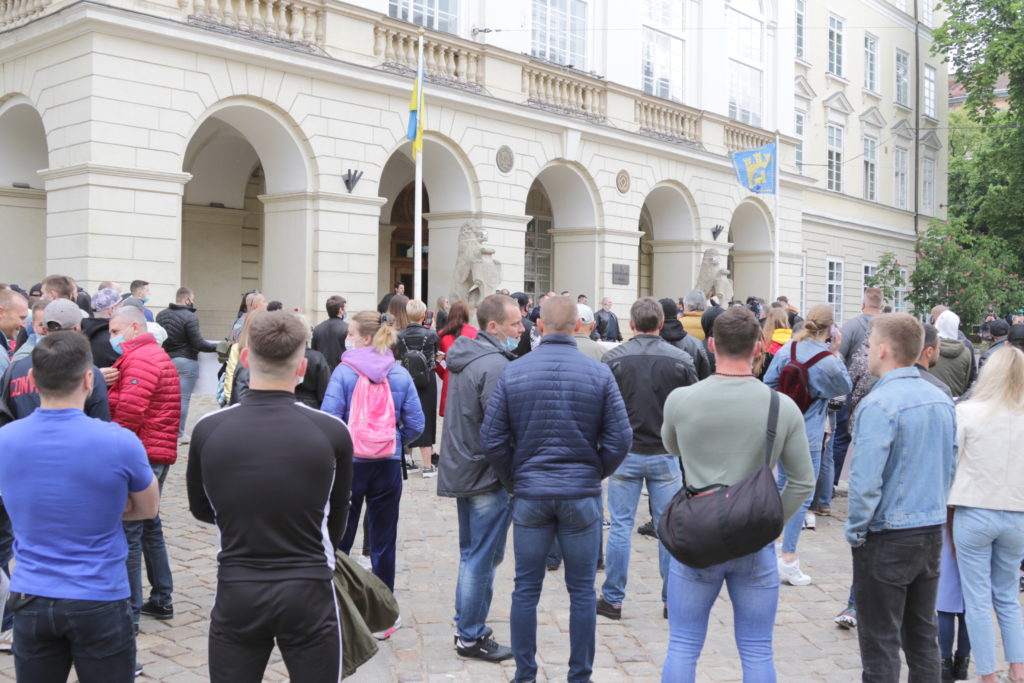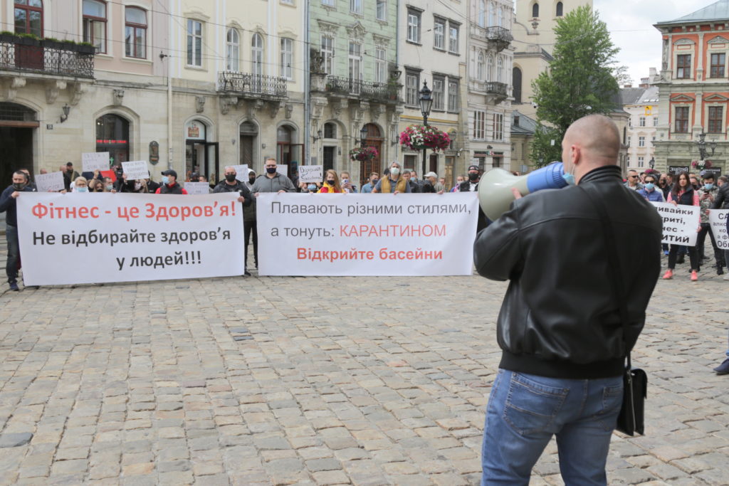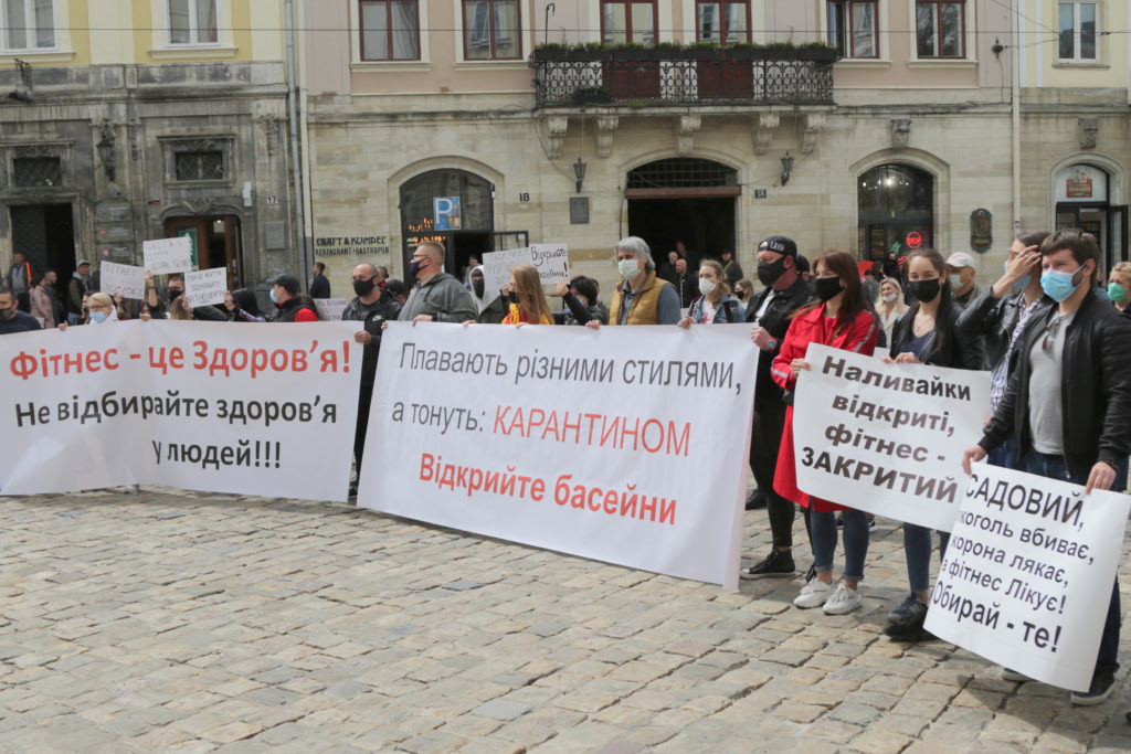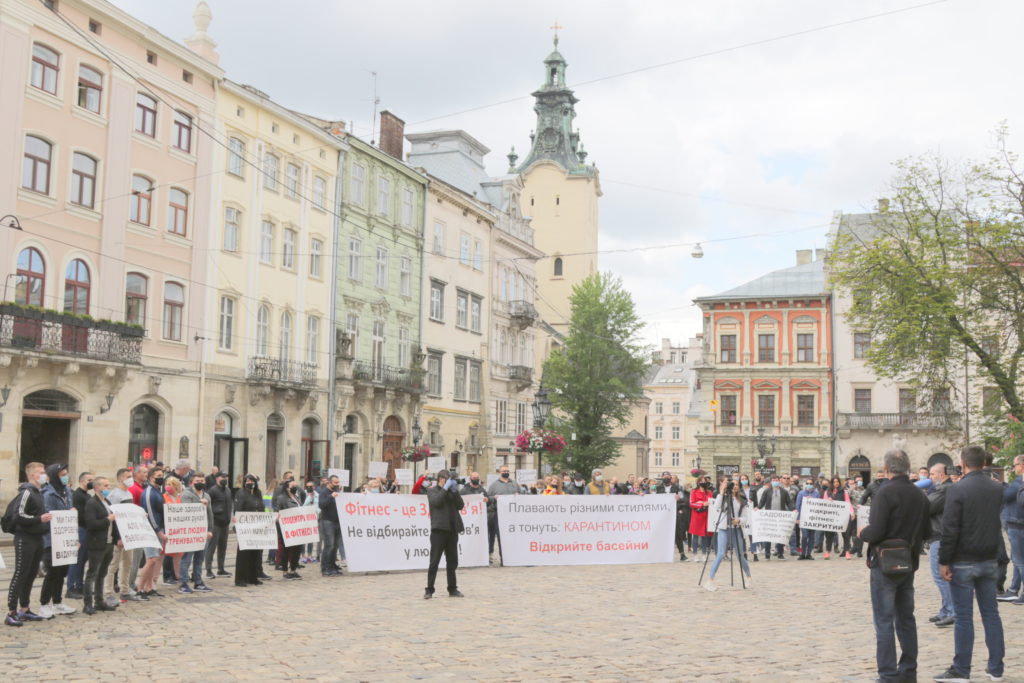 Під стінами Львівської міської ради зібрались пікетувальники, які вимагають відновити роботу спортивних центрів і басейнів, інформує 4studio.
