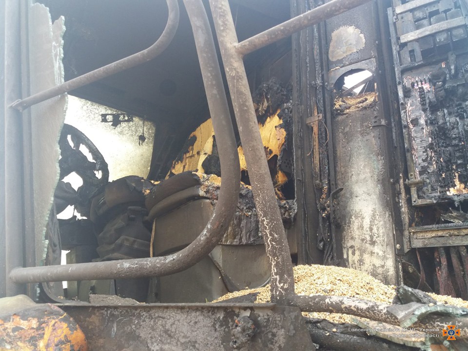 По прибуттю вогнеборці переконались у знеструмлені комбайна та почали ліквідовувати займання. Пожежу комбайна було локалізовано о 12:32 та повністю ліквідовано о 12:44. Вогнем знищено комбайн.
