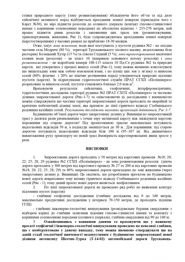 Будівництво об’їзної дороги через закарстовану долину річки Вишниця у десятки разів небезпечніше з точки зору активізації карсту, аніж ліквідація карстових порожнин під старою дорогою!