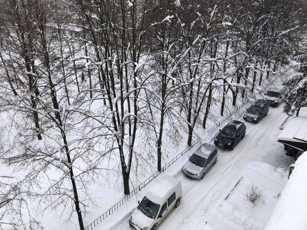 Позначки: затори, негода, Новояворівськ, снігопад