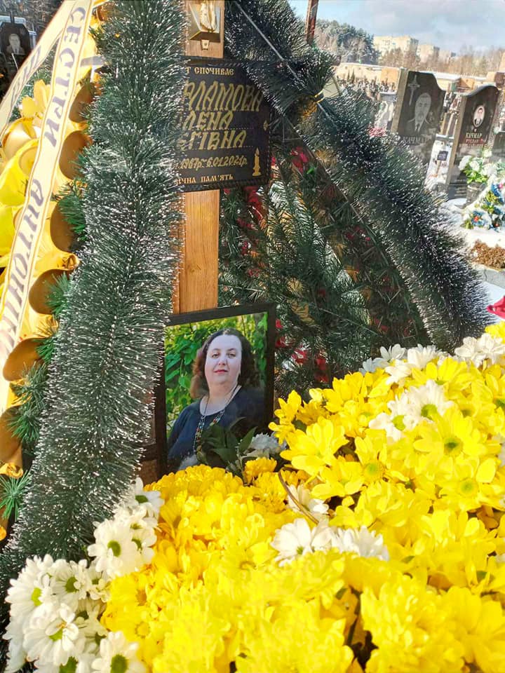 Свіжа могила О.О.Харламової потонула у морі живих квітів. Це, як сказала її сестричка Антоніна Antonina Kharlamova , любов рідних, учнів, колег, друзів востаннє огорнула Лєночку серед білого засніженого зимового полотна і створила барвистий острівок світла, літа, тепла…