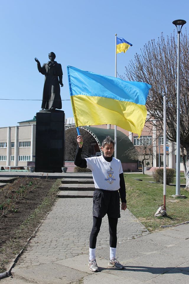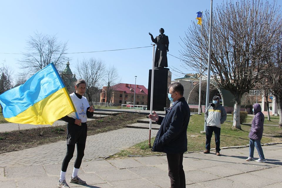 “Патріотичний задум – здійснити пробіг довкола Львівщини, приурочений до 30-ї річниці підняття українського національного прапора над Львівською міською ратушею 3 квітня 1990 року належить львів’янину Ярославу Козаку”, – йдеться у дописі.