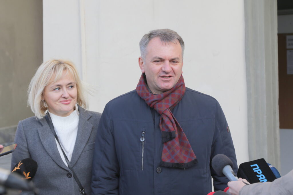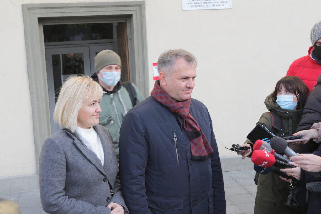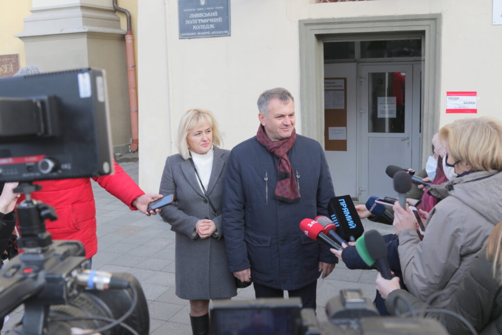 Прийшов на дільницю аби віддати свій голос і один із кандидатів – Олег Синютка. Нардепа “Європейської Солідарності” супроводжувала його дружина Наталя.