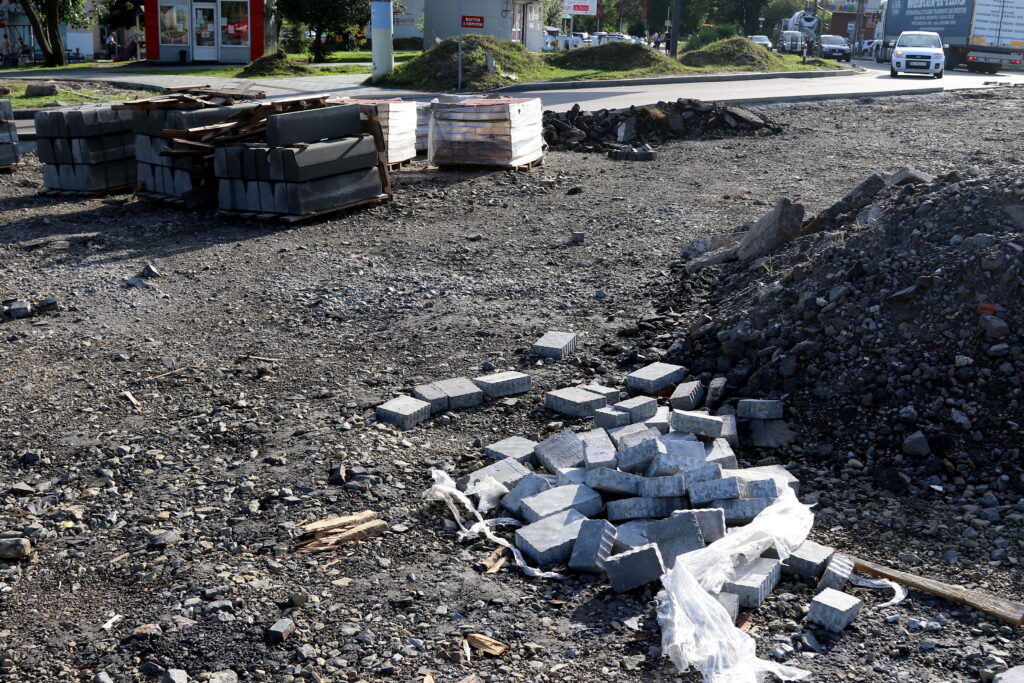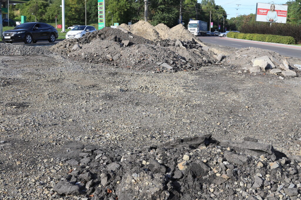 Щоправда, з моменту виїзду на майбутній острівець минуло вже два місяців, а жодних робіт так і не почали проводити: усе дорожнє покриття розрите та валяється на узбіччі дороги.