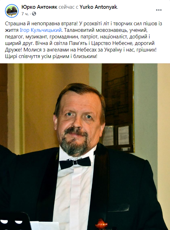 Відійшов у засвіти Ігор Кульчицький.