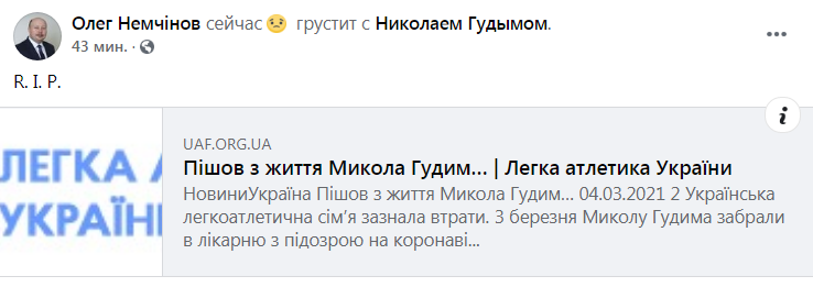 Пішов з життя Микола Гудим. Українська легкоатлетична сім’я зазнала втрати. 3 березня Миколу Гудима забрали в лікарню з підозрою на коронавірус, а зранку 4 березня надійшла звістка про те, що його не стало.