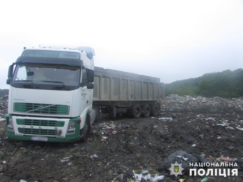На місце події одразу прибула група реагування патрульної поліції, яка зафіксувала факт перебування вантажівок на полігоні твердих побутових відходів без відповідних документів та дозволів.