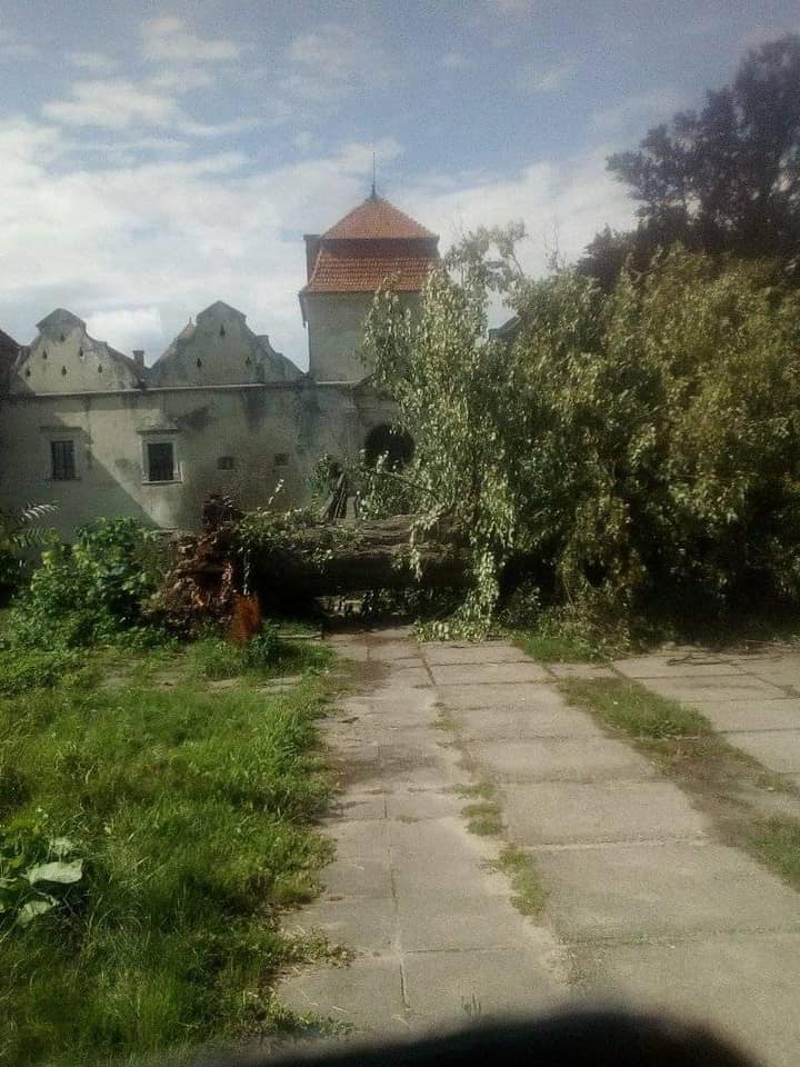 “Біля Свіржського замку майже на міст після вітру впала старенька Липа, якій було близько 200 років. Наразі не помітно служб, які б могли розчистити вхід у замок”, – йдеться у повідомленні.