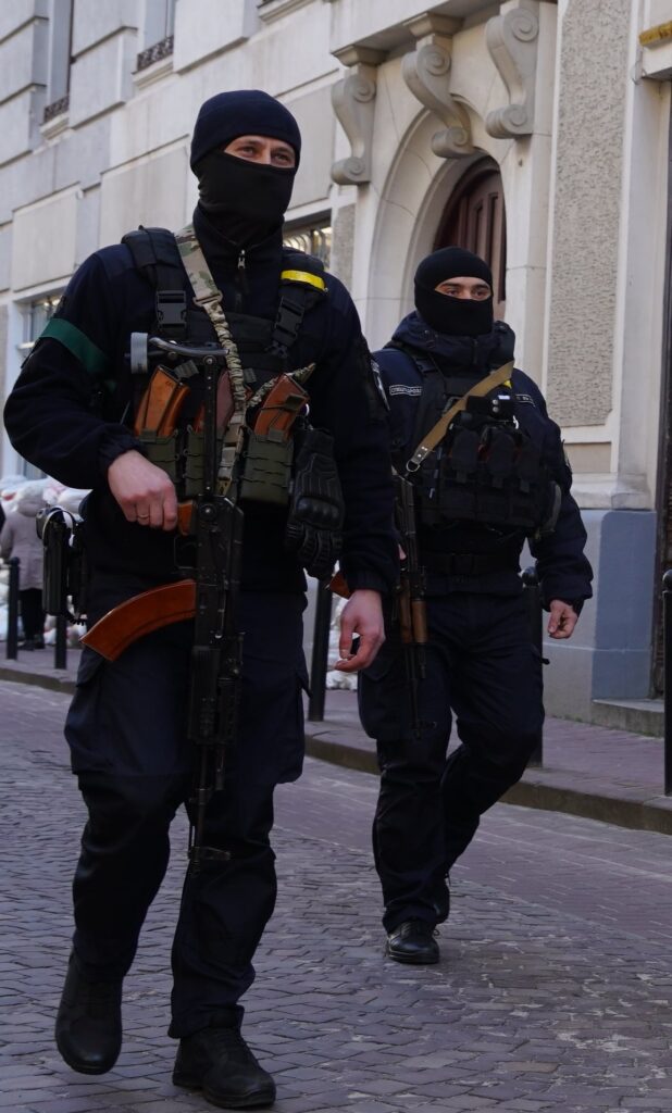 Поліцейські Львівщини продовжують нести службу у посиленому режимі – спільно з нацгвардійцями, бійцями тероборони та представниками громадських формувань патрулюють вулиці Львова та інших населених пунктів області, а також несуть службу на блокпостах.
