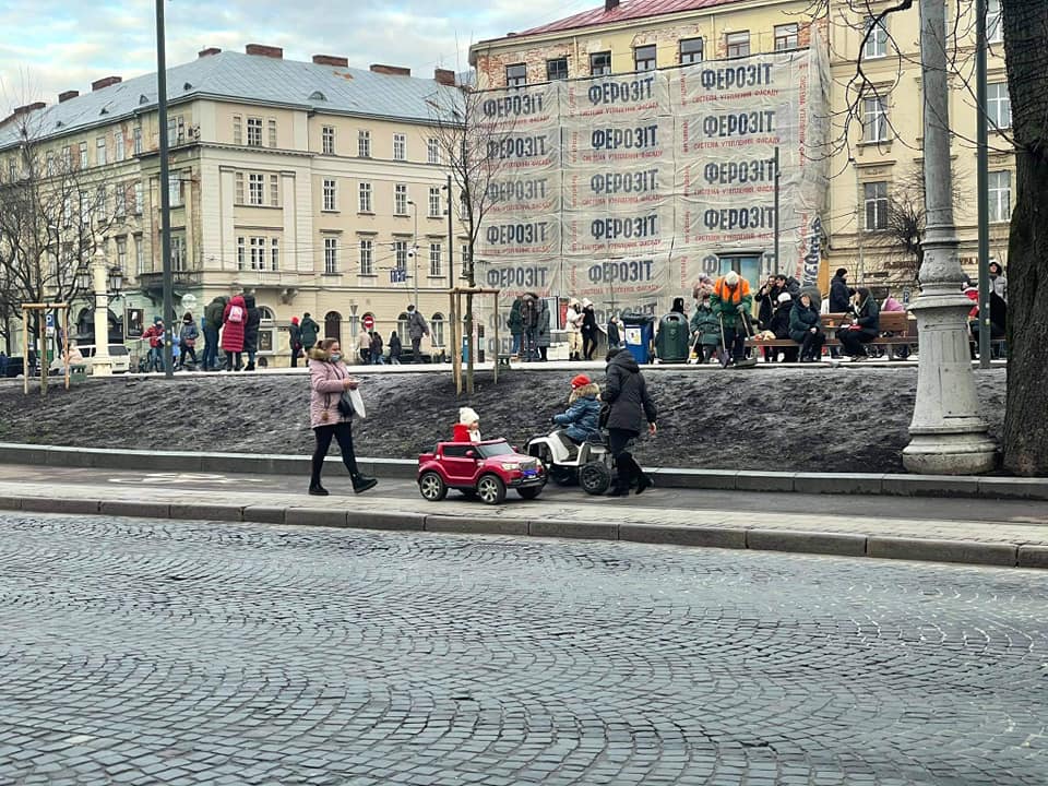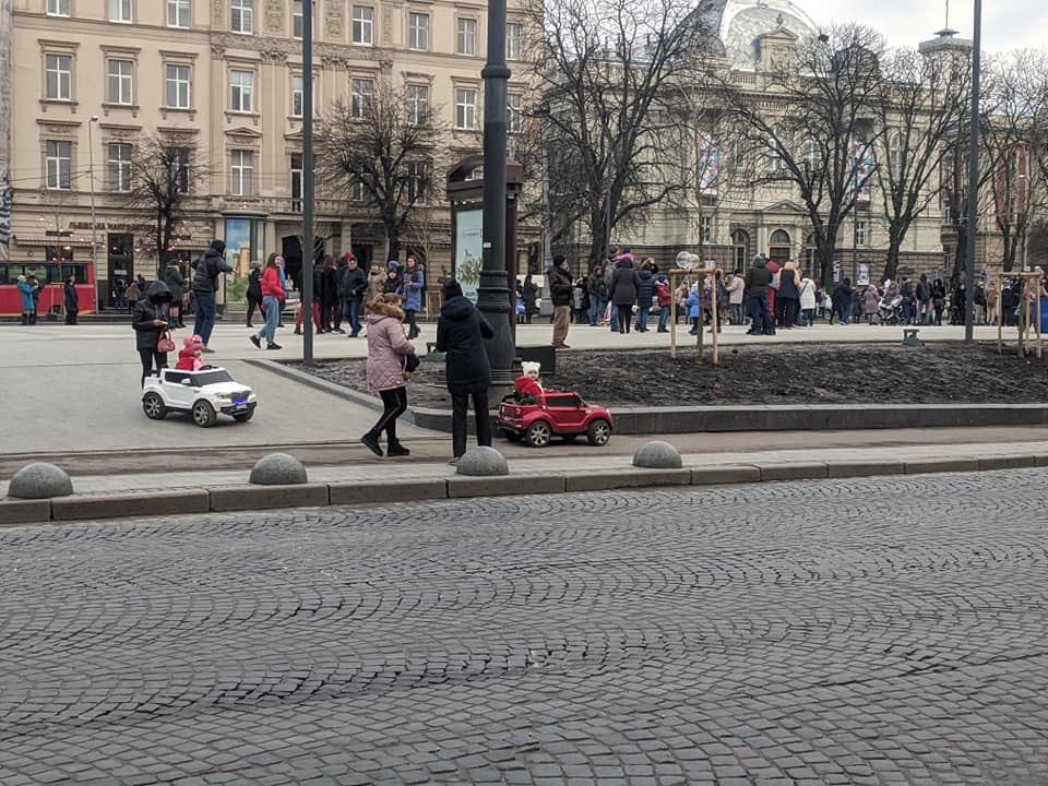 У Львові під час оголошення посиленого карантину, у центрі міста працює атракціон з прокату дитячих електричних машинок.