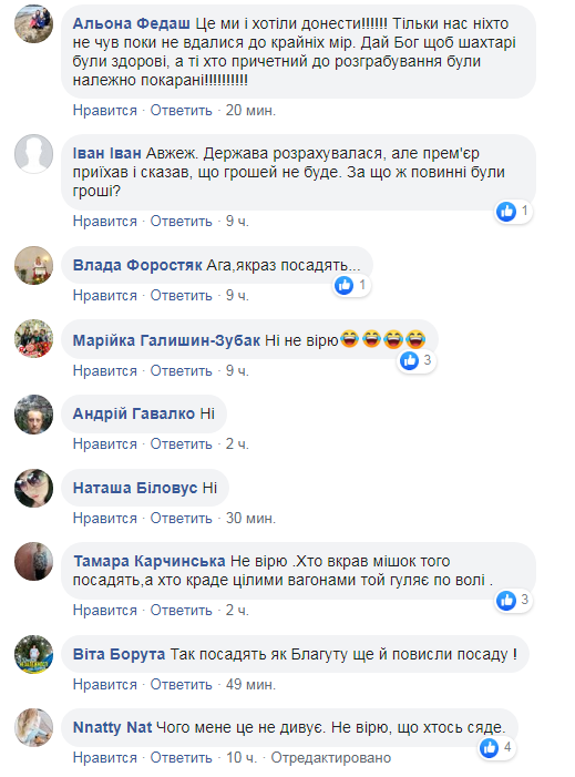 “Ситуація по шахті «Надія» прояснилася. Держава розрахувалася з шахтою на 100%. Держава нічого не винна цій шахті. Із-за чого шахтарі не можуть отримати свою зарплату? З 2018 року, по 2020 рік майже всі керівники шахти нагло крали, оформляли все не правильно. І доводили підприємство до банкрутства! Тепер вибір не великий. Шахту з великою ймовірністю просто закриють. Правоохоронні органи вже взялися перевіряти всі корупційні оборудки на шахті. Дуже і дуже надіємося, що все ж посадять хоч 3-5 злодіїв!”,- повідомляється на сторінці “Підслухано в Червонограді”.