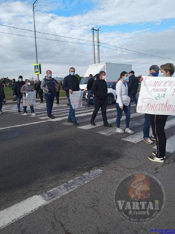 На Львівщині відбувається перекриття дороги. Люди протестують проти приєднання до Львова.