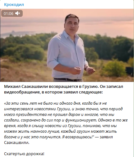 Як повідомляє “Крокодил” у Телеграм, Міхеїл Саакашвілі повертається в Грузію. Він записав відеозвернення, в якому заявив наступне:
