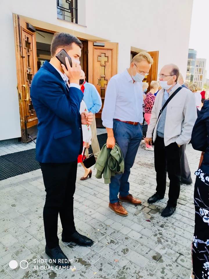 Міський голова Львова відвідав храм Різдва Пресвятої Богородиці на Сихові з охороною.