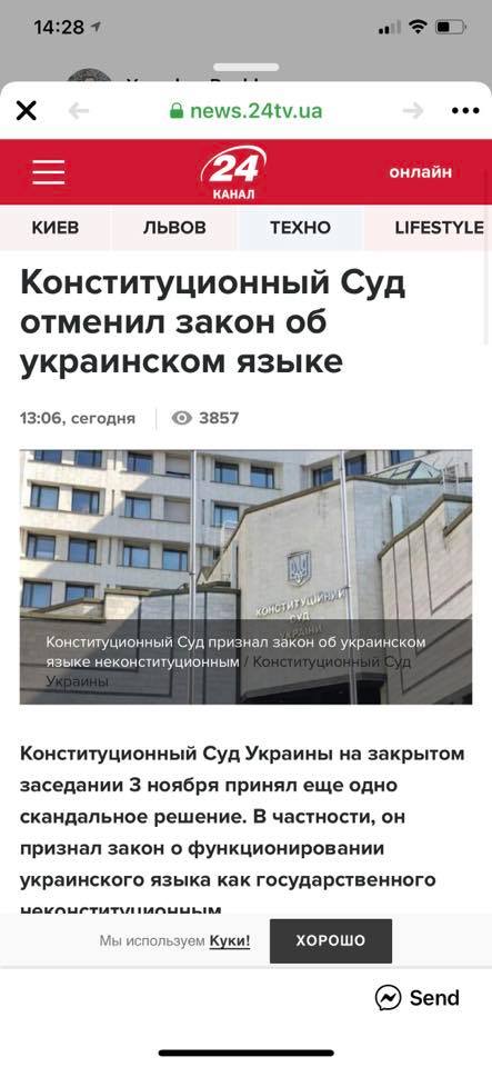 Сьогодні, 2 листопада, інформаційний сайт “24 канал”, який належить дружині міського голови Львова Андрія Садового, повідомив, що “Конституційний Суд скасував Закон про мову, 3 листопада”.