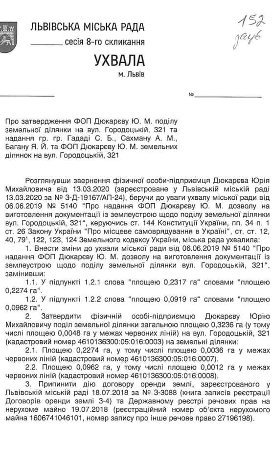 Зокрема мова йде про документи на земельну ділянку що розташована за адресою Городоцька 321.