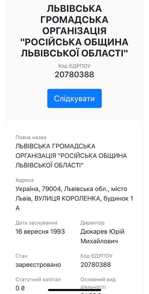 ФОП Юрій Дюкарєв – підприємець більш відомий як голова Російської громади у Львівській області.