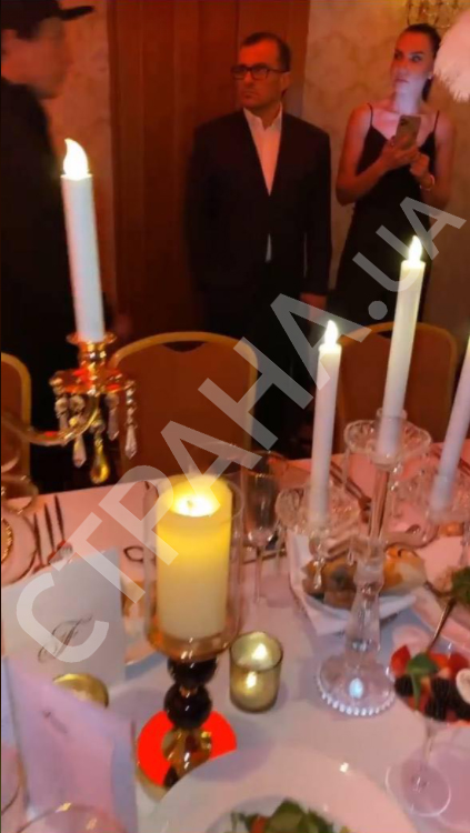 Судячи з інтер’єру приміщення, ймовірно, свято проходить в ресторані київського готелю Fairmont. Зазначимо, що згідно з суворим режимом карантину, який вводиться в столиці, робота ресторанів заборонена навіть в готелях (там вони можуть працювати тільки в ранкові години). Таким чином, це грубе порушення карантинних заходів.