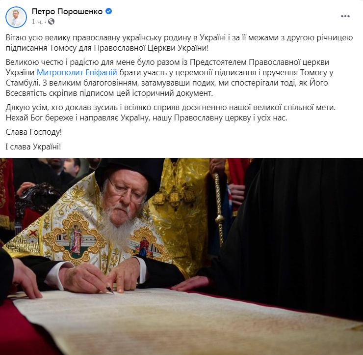 Вітаю усю велику православну українську родину в Україні і за її межами з другою річницею підписання Томосу для…