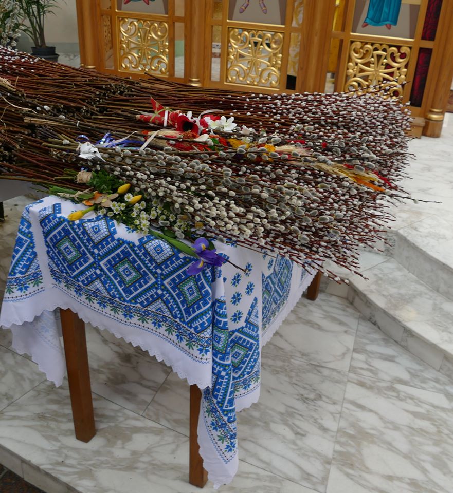 - Фото: Ukrainian People Magazine На фото: Папа Римський Франциск з пальмовою гілкою та святкування Вербної неділі у греко-католицькій церкві святого Йосифа Обручника (Чикаго)
