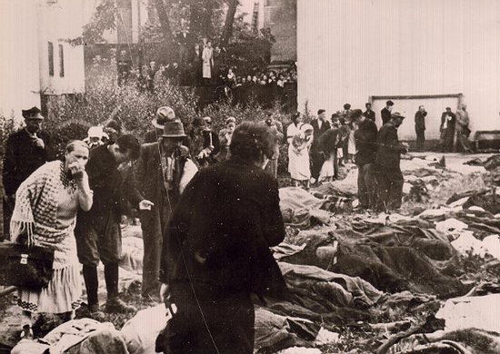 - У Львові та інших містах Західної України НКВД без суду і слідства розстріляла кілька тисяч політв’язнів. Нацисти скористалися цим фактом, щоб спровокувати єврейські погроми на початку липня 1941. Львів, подвір’я в’язниці №1, 1941 рік. З архіву ЦДВР/Історична правда