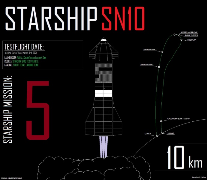 Напередодні старту SN10 Маск зазначив, що випробування прототипу пройдуть успішно з ймовірністю 60% (попередні тести, за оцінкою Маска, мали 33% на успіх).