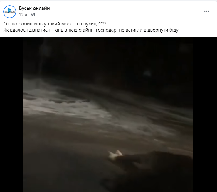 «От що робив кінь у такий мороз на вулиці? Як вдалося дізнатися – кінь втік із стайні і господарі не встигли відвернути біду», – зазначається у коментарі до відео.