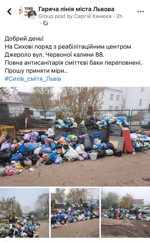 У Сихівському районі Львова, поруч з реабілітаційним центром Джерело, на вулиці Червоної Калини, 88, перестали вивозити сміття.