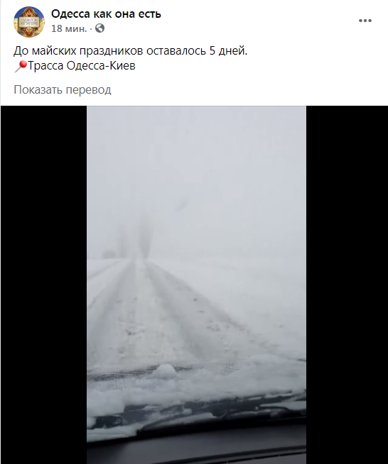 «До травневих свят залишилося 5 днів. Траса Одеса – Київ», – зазначається у коментарі до відео, яке оприлюднено на сторінці «Одеса як вона є» у ФБ.