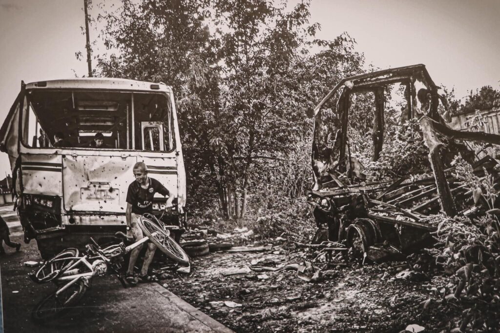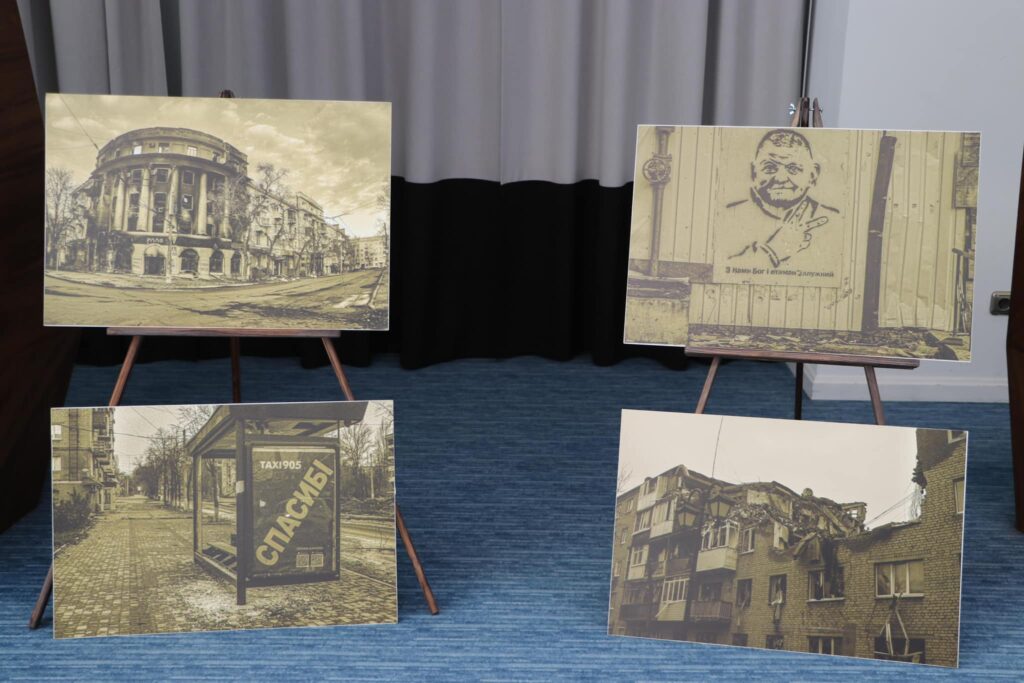 Автор виставки – фотограф Костянтин Ревуцький. Мета проєкту – показати стійкість та незламність українського народу після початку повномасштабної війни. Фото демонструють історію двох міст, які зазнали ракетних обстрілів, окупації, масових вбивств мирного населення.