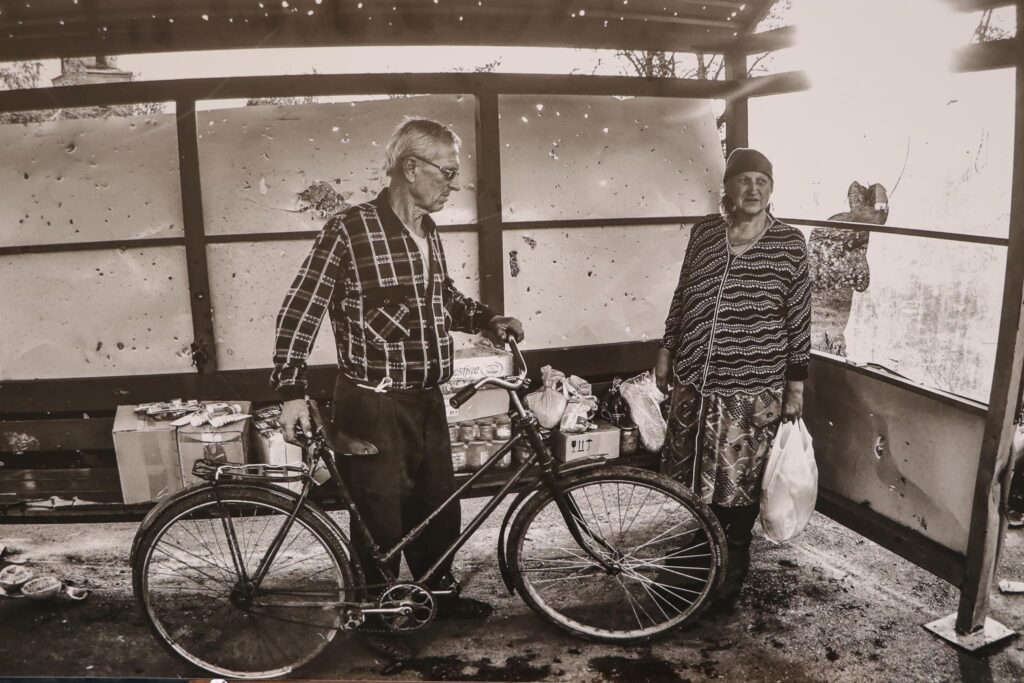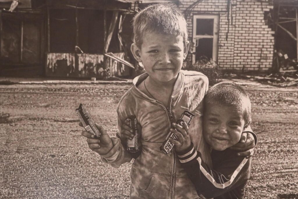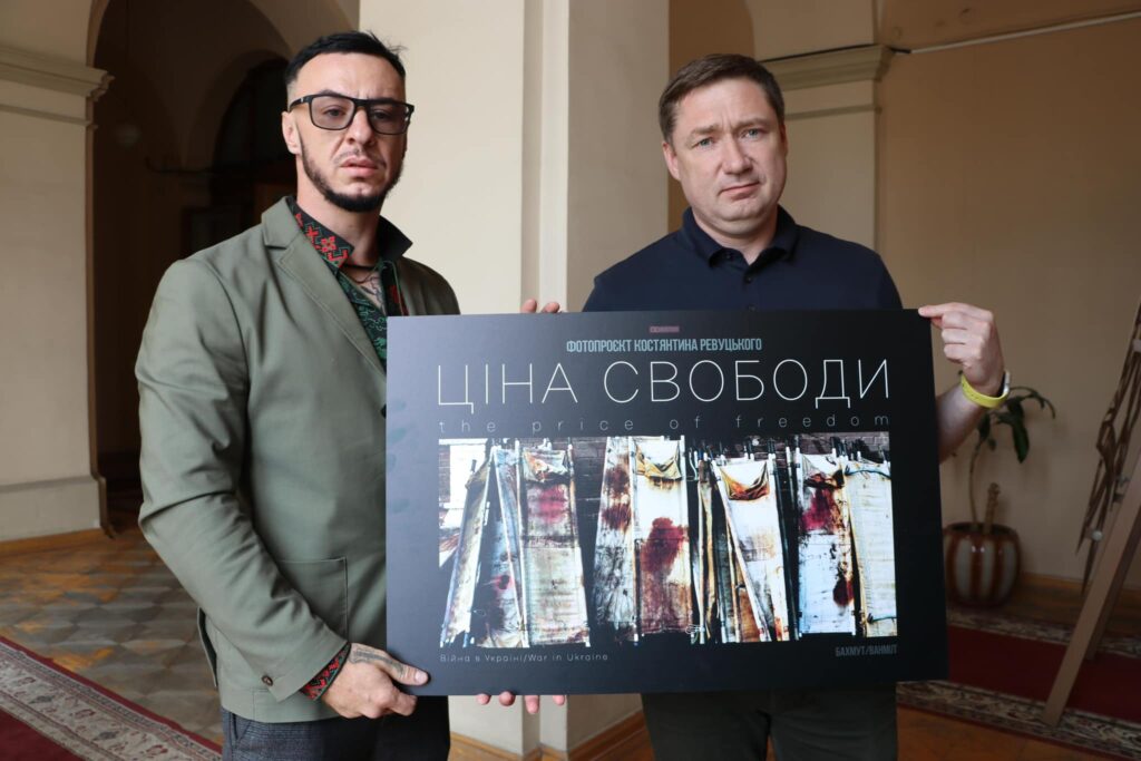 Вона складається з 40 фотокартин та об’єднує два проєкти: «Бахмут. Місто нескорених» та «Ізюм. Деокупація».