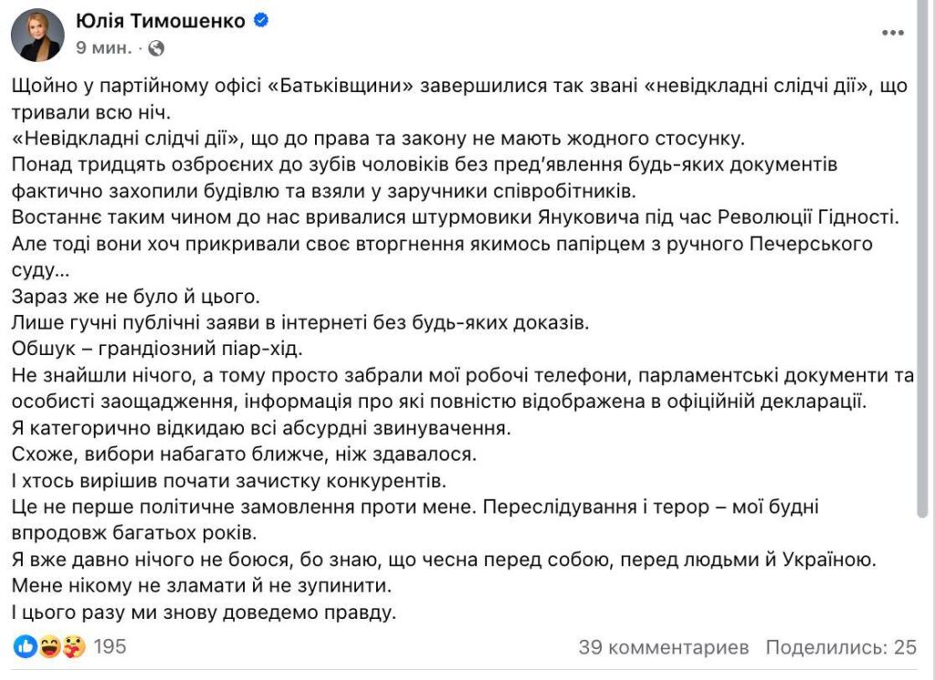 Обшуки вона називає “політичним замовленням” і відкидає будь-які звинувачення.