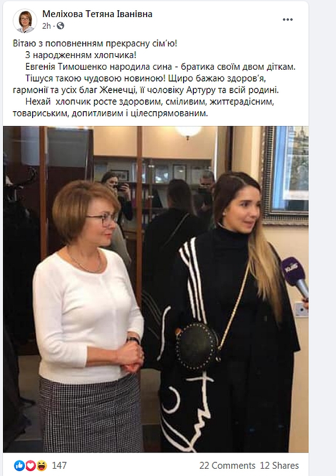 Про це у мережі повідомила секретарка “Батьківщини” у Київраді Тетяна Меліхова.