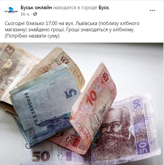 «Гроші знаходяться у хлібному. Потрібно назвати суму», – зазначається у дописі «Буськ онлайн».