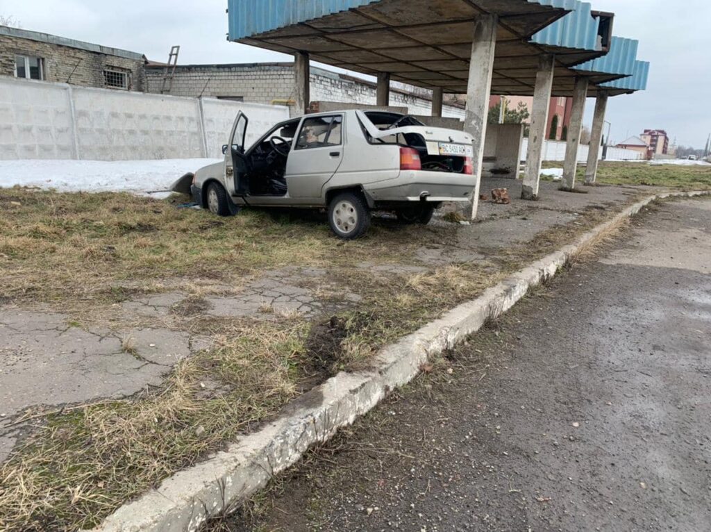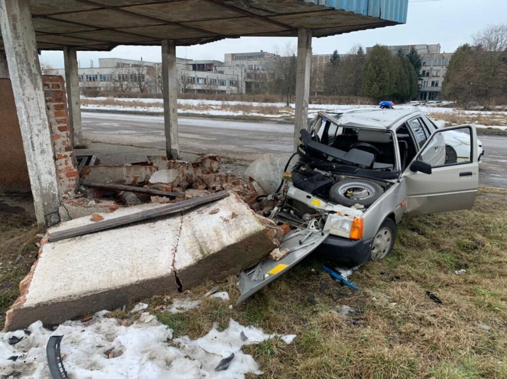У місті Червоноград на Львівщині, по вулиці Промислова, сталася дорожньо-транспортна пригода за участю легкового автомобіля “Таврія”. Легковик в’їхав у зупинку громадського транспорту.