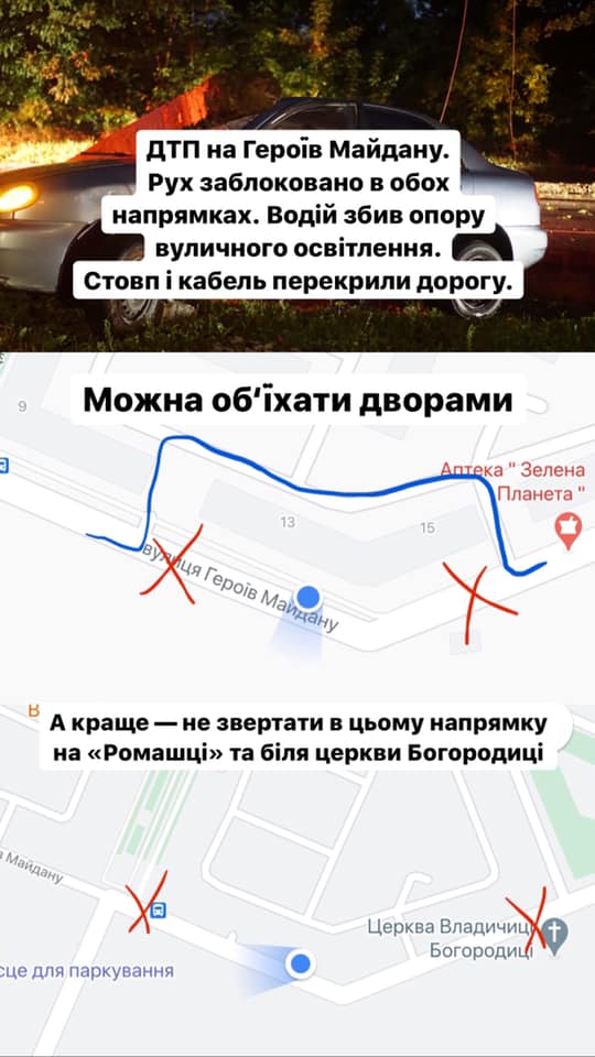 До уваги водіїв! Рух по вул. Героїв Майдану заблокований через ДТП