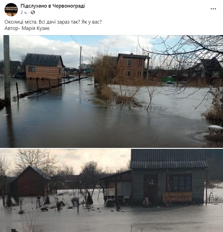 Як пише «Четверта студія». на сторінці «Підслухано в Червонограді» у ФБ, оприлюднено світлини, як дачні будинки стоять у воді.