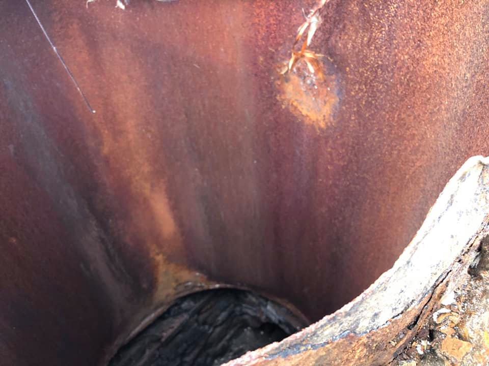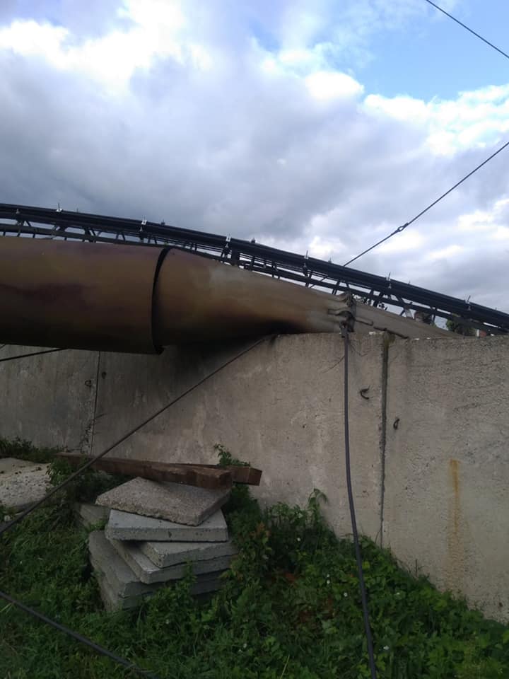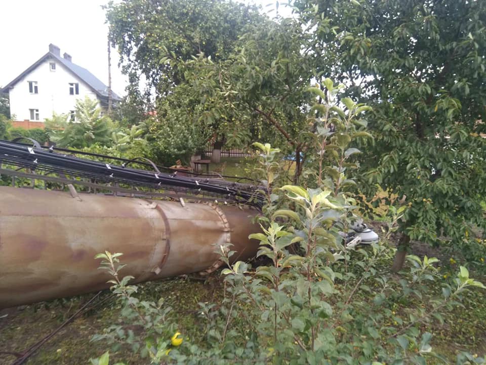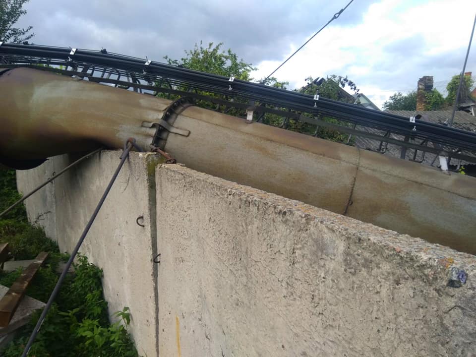 Каже, дуже пощастило, що комин, який впав на город, розташований по сусідству, не пошкодив навіть дерева. Що ж до самої конструкції, то бетонна основа, розтяжки – все було, як належить. А от сама металева труба замість мінімум шести міліметрів товщини була завтовшки 0,5-1,5 мм. Проте пропрацювала старенька у парі з діючим котлом 60 років. Тепер ветеранку опалювальної праці мусять демонтовувати, а на заміну їй будувати нову.