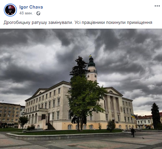 У четвер, 15 жовтня, о 10:40 надійшло повідомлення про замінування адміністративної будівлі Дрогобицької ратуші.