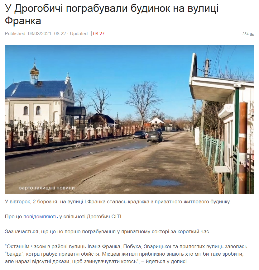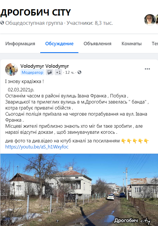 “Останнім часом в районі вулиць Івана Франка, Побука, Зварицької та прилеглих вулиць завелась “банда”, котра грабує приватні обійстя. Місцеві жителі приблизно знають хто міг би таке зробити, але наразі відсутні докази, щоб звинувачувати когось”, – йдеться у дописі.