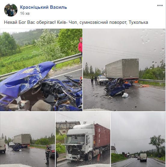 “Київ- Чоп, сумнозвісний поворот, Тухолька”,- зазначається у дописі до світлин з місця ДТП.