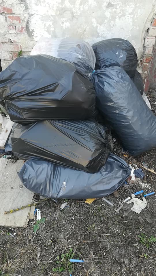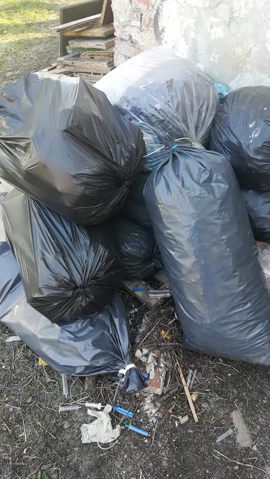 У місті Городок на Львівщині, працівники місцевої лікарні викидають мішки з використаними шприцами просто на землю поблизу школи.