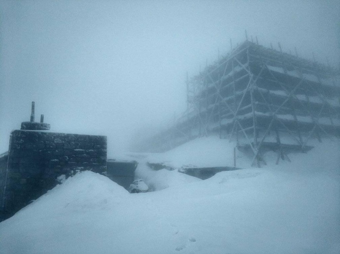 Станом на 08:00, 02.04.2021 на г. Піп Іван Чорногірський хмарно, туман (видимість до 50 м), температура повітря -1°С, вітер північний 11 м/с. За ніч випало до 15 см мокрого снігу.