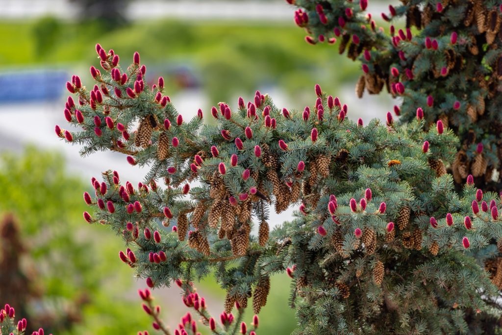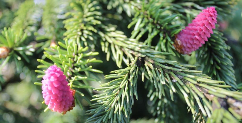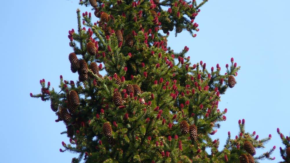 Закарпатські смереки на Рахівщині вбралися у шишковий “цвіт” – так відбувається традиційний процес запилення цих хвойних дерев у травні.