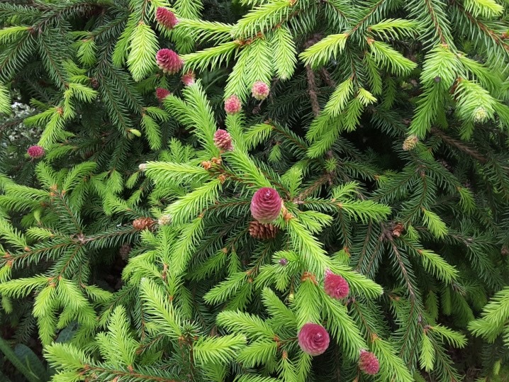 Як повідомляє Товариство “Краяни Рахівщини” у Facebook, зазвичай смерека, або ялина європейська запилюється у травні. Насіння достигає у рік запилення. Чоловічі шишечки видовжено-циліндричні (20-25 мм завдовжки), червонуваті, розміщені на кінцях торішніх пагонів. Жіночі шишечки зеленуваті або малинові (10-15 мм завдовжки), циліндричні, розміщені на кінцях молодих гілочок. Стиглі шишки довгасто-циліндричні (10-15 см завдовжки), спочатку зелені або фіолетові, пізніше бурі, повислі, блискучі.