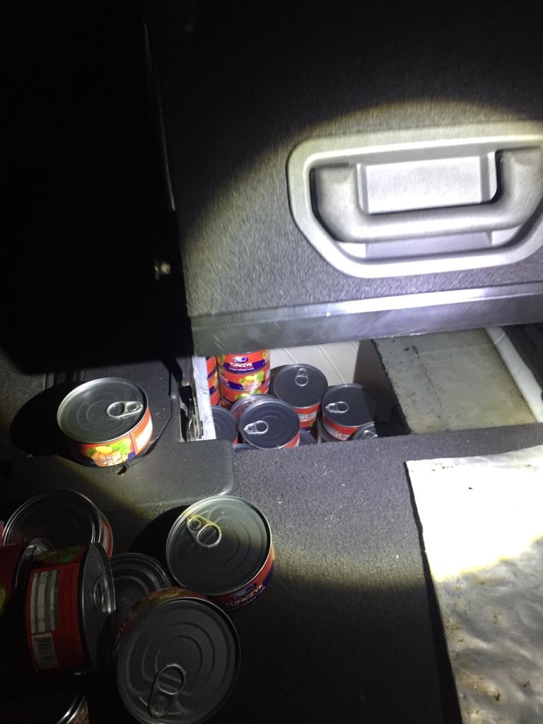 Обравши цю смугу руху, вона засвідчила, що немає товарів, на переміщення яких встановлені заборони або обмеження. Однак працівники митниці вивели автомобіль із загального потоку для поглибленого огляду, і не дарма. За декоративною обшивкою багажного відділення автомобіля та під настилом підлоги митники виявили 411 банок рибних консервів польського виробництва.